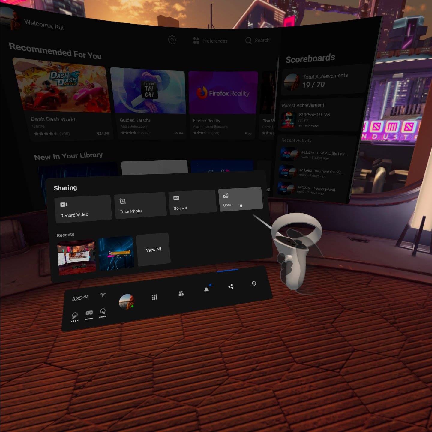 Outra excelente feature do Quest 2, que ainda não abordamos, é a capacidade de fazer facilmente cast do que vemos para dispositivos à nossa volta. Assim, podemos estar na sala com amigos a jogar e eles podem assistir ao nosso gameplay na televisão (Smart TV ou Chromecast), ou no telemóvel. Esta funcionalidade é particularmente útil para auxiliar pessoas que estejam a utilizar VR pela primeira vez, permitindo-nos guiar os newbies e auxiliar todo processo através do nosso telemóvel.