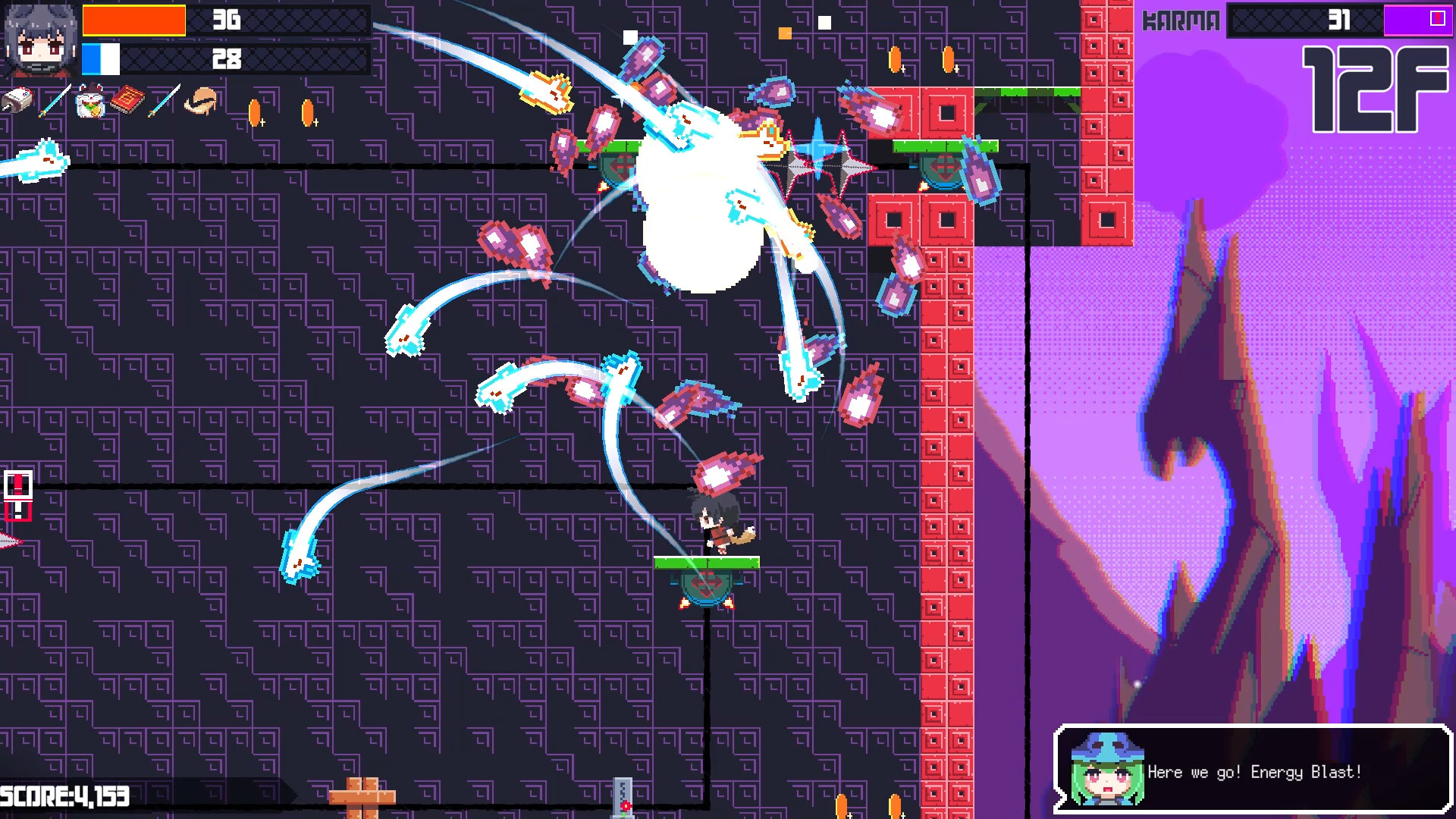 Existem também pelo caminho vários pequenos upgrades, desde velocidade, a regeneração de vida, entre várias outras coisas. Umas salas onde podemos escolher entre um demónio e a morte (aquela da foice), que muda um pouco o percurso que temos pela frente na torre, e até mesmo um bar onde nos oferecem a escolher sempre entre uma de 3 poções.