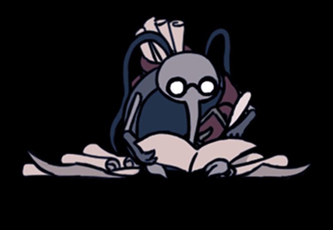 Obviamente, outra vez Cornifer, é incrível ver o seu amor pelo seu trabalho. É a personificação dos walkthrough em Hollow Knight.
